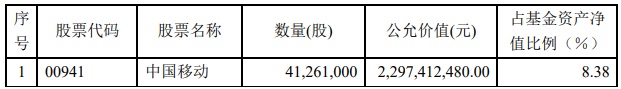 与上一季度相比,该基金前十大重仓股新增腾讯控股,中国移动持仓占比6.84%,为第一大重仓股,吉利汽车等退出前十大重仓股。