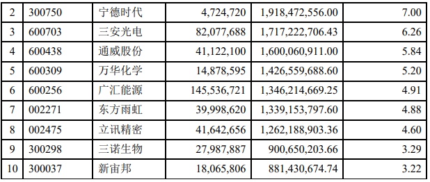 持仓方面,该基金前十大重仓股分别为中国移动、宁德时代、三安光电(600703.SH)、通威股份、万华化学(600309.SH)、广汇能源(600256.SH)、东方雨虹(002271.SZ)、立讯精密(002475.SZ)、三诺生物(300298.SZ)、新宙邦(300037.SZ)。
