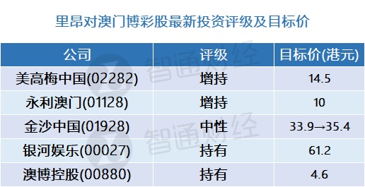 该行进行调研,澳门五一黄金周期间酒店客房需求旺盛,追踪27间酒店于黄金周期间订房情况,其中15间已订购一空。另预计澳门第二季博彩收入将达391.01亿港元(按年升3.88倍及按季升20.2%)。此外,对澳门博彩业今明年EBITDA预测各下调1%至2%,并对今年首季银河娱乐(00027)及美高梅中国(02282)预测作出调整。不过维持对今年行业博彩收入预测约1643亿元(达2019年59%水平)。