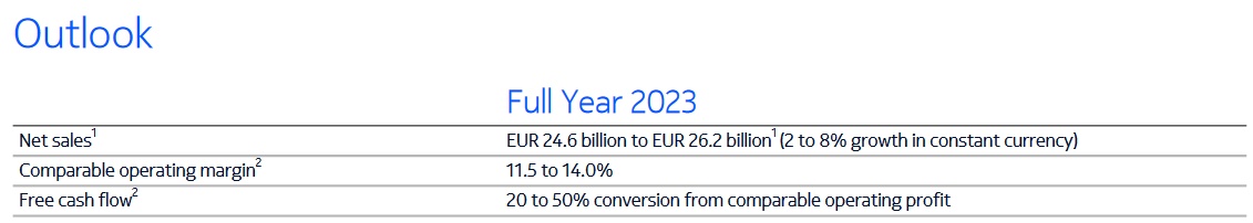 诺基亚预计,今年下半年的盈利能力将强于上半年。诺基亚维持可比基础上的全年营业利润率在11.5%-14%之间的预期,2022年的这一数据为12.5%。该公司预计,根据汇率波动调整后的全年销售额在246亿-262亿欧元之间,市场预期为256亿欧元。