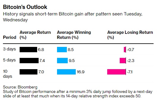 智通财经APP获悉,比特币仍在3万美元左右挣扎,今年的涨势正面临考验。不过,最近的交易信号暗示,比特币能会再次突破这一水平,并实现7%的短期涨幅。根据研究,在比特币普遍看涨的时期,该代币单日至少上涨3%,次日又至少下跌3%。过去五年里,在出现17次这样的信号后,比特币在3天、5天和10天内平均上涨了约7%。该研究通过相对强弱指数(一种动量指标)来确定看涨期,该指数必须高于50。