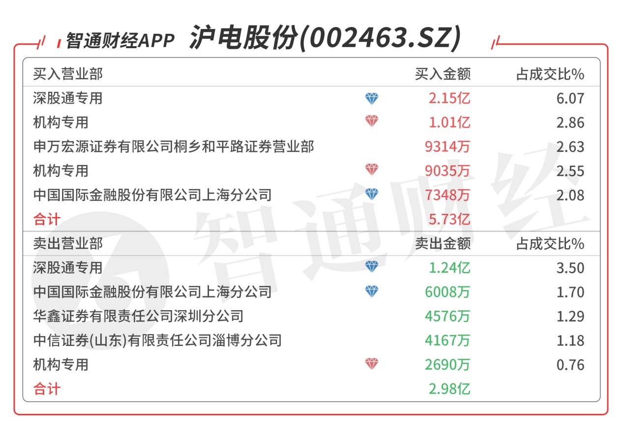 沪电股份(002463.SZ):受到众多机构青睐,今日共3家机构席位出现在龙虎榜单上,合计净买入1.68亿元,深股通大单对倒净买入9104万元,买五是量化基金的席位对倒净买入1340万元,当日净买入2.77亿元,该股今日强势涨停,预计走趋势为主。