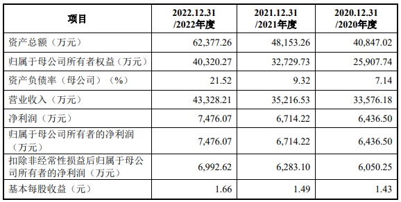 财务方面,经纬股份主营业务收入呈现逐年增长的趋势,于2020年度、2021年度及2022年度,公司实现营业收入分别约为3.36亿元、3.52亿元、4.33亿元。归属于母公司所有者的净利润分别约为6436.50万元、6714.22万元、7476.07万元人民币。