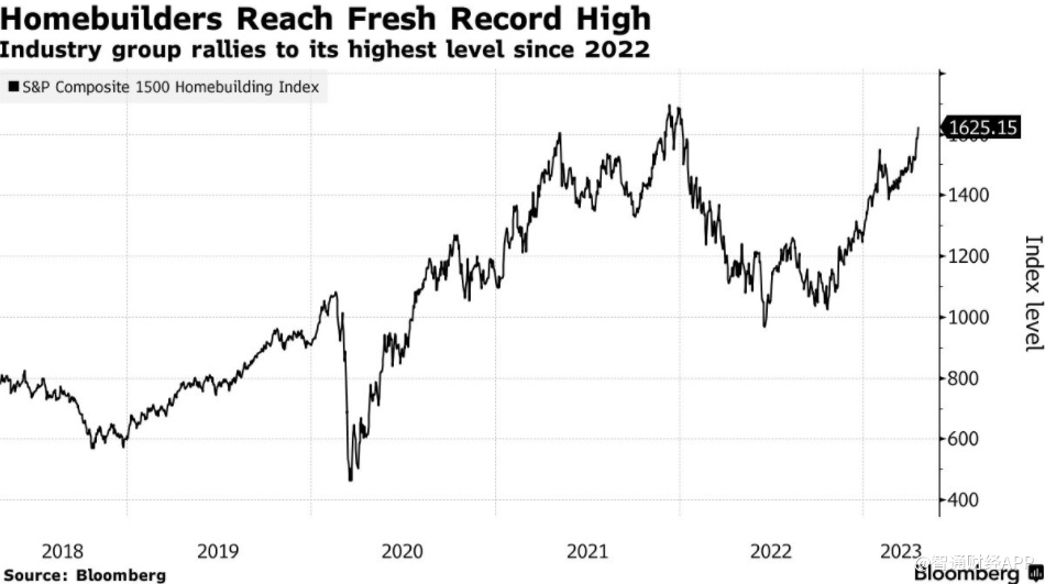 智通财经APP获悉,美国房屋建筑业指数跃升至2022年1月以来的最高水平,此前行业领头羊霍顿房屋(DHI.US)公布好于预期的第二季度订单和业绩。今年迄今为止,跟踪美国房屋建筑业的指数上涨了28%,摆脱了自2018年以来最糟糕的一年之一。该板块在2022年下跌了25%。美国最大的房屋建筑商霍顿房屋周四领涨板块,其股价上涨5.6%,收于2021年12月31日以来的最高水平。
