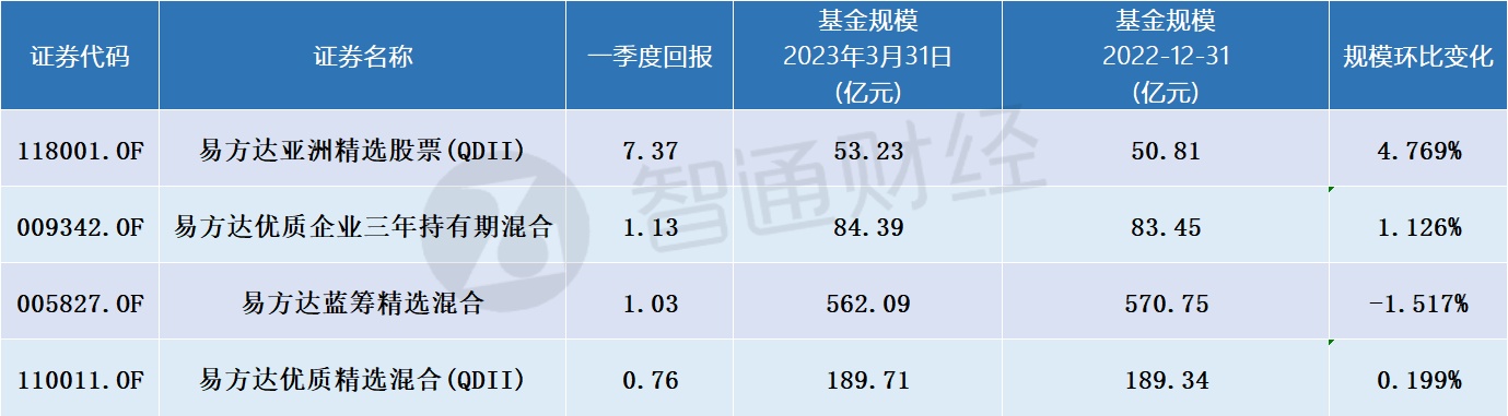 截至3月31日,易方达优质精选混合(QDII)份额净值为6.1737元,报告期内份额净值增长率为0.76%,同期业绩比较基准收益率为 2.91%。
