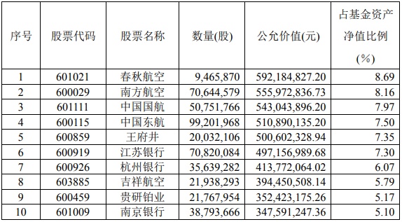 林英睿的重仓股中,航空和银行仍然占据多数。截至一季度末,该基金前十大重仓股分别是春秋航空(601021.SH)、南方航空(600029.SH)、中国国航(601111.SH)、中国东航(600115.SH)、王府井(600859.SH)、江苏银行(600919.SH)、杭州银行(600926.SH)、吉祥航空(603885.SH)、贵研铂业(600459.SH)、南京银行(601009.SH)。