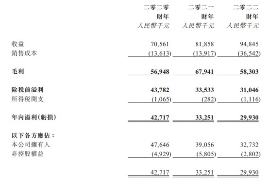 智通财经APP了解到,2020-2022财年,风华秋实实现收益分别约为7056.1万、8185.8万、9484.5万元(人民币,单位下同);眼见着营收“破亿”在即,该公司实现净利润约为4764.6万、3905.6万、3273.2万元,却呈现增收不增利、且连年下滑的疲态。