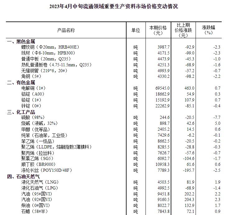 智通财经APP获悉,4月24日,国家统计局发布2023年4月中旬流通领域重要生产资料市场价格变动情况。据对全国流通领域9大类50种重要生产资料市场价格的监测显示,2023年4月中旬与4月上旬相比,19种产品价格上涨,29种下降,2种持平。其中,生猪价格为14.1元/千克,环比下降2.8%。