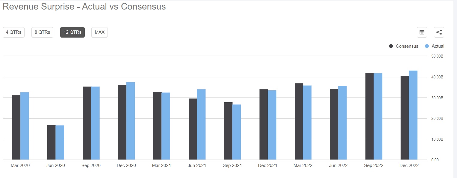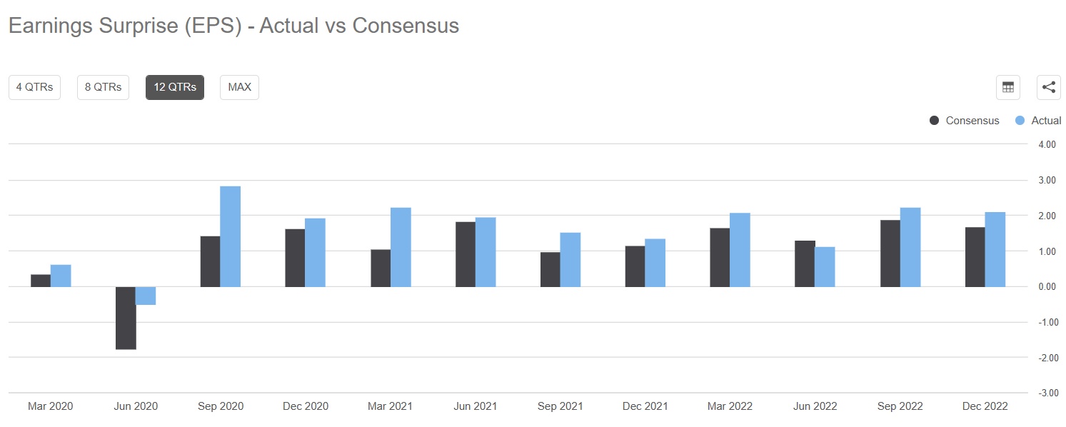Zacks Equity Research近日发布报告称,如果投资者在寻找一只业绩持续超出预期、并有可能在即将到来的季度报告中保持这种势头的股票,通用汽车公司是一个很好的候选标的,该公司属于美国国内汽车工业的领导者。该公司在过去四个季度中有三个季度的实际每股收益超出预期,但是营收则稍逊于每股收益(EPS),过去4个季度中只有2个季度超出预期;Zacks 的分析师认为第一季度可能会出现另一个惊喜。