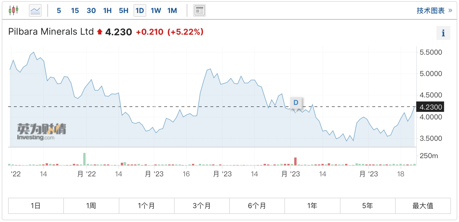智通财经APP获悉,由于智利拟将锂矿国有化,市场预期对澳大利亚锂供应的需求将增长。受此提振,澳大利亚锂矿股周一普遍上涨。数据显示,澳大利亚最大的独立锂矿生产商皮尔巴拉矿业公司(Pilbara Minerals)涨超5%,至六周半以来的最高水平;Mineral Resources、Liontown Resources、Core lithium和IGO Ltd等锂矿生产商的股价同样走高。