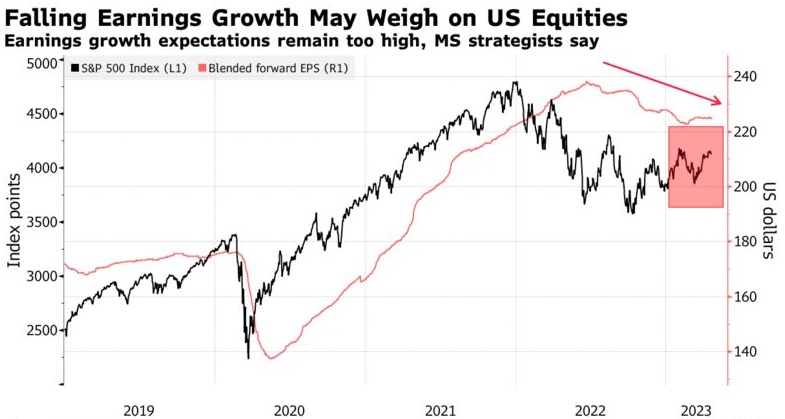 该策略师预计,在今年第三或第四季度之前,公司盈利增长不会触底,这与分析师普遍预计的下半年反弹形成鲜明对比。他写道:“总的来说,数据向我们表明,商业周期正在继续放缓,对2023年每股收益的普遍预期仍然过高。”