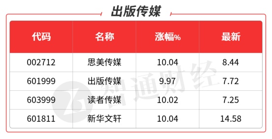 传媒、游戏等应用板块迎来强修复,今日再度掀起涨停潮,叠加数据要素的中国出版(601949.SH)3连板,反复提到的数据要素龙头中国科传(601858.SH)10天6板,续创新高,南方传媒(601900.SH)4天3板,中原传媒(000719.SZ)3天2板,星辉娱乐(300043.SZ)、世纪天鸿(300654.SZ)均20CM涨停;电魂网络(603258.SH)、思美传媒(002712.SZ)、出版传媒(601999.SH)等多家成分股涨停。