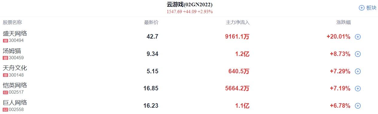 游戏、传媒股继续活跃,盛天网络涨20%涨停,浙文互联涨停,中青宝、浙数文化、中文在线、神州泰岳等纷纷冲高。