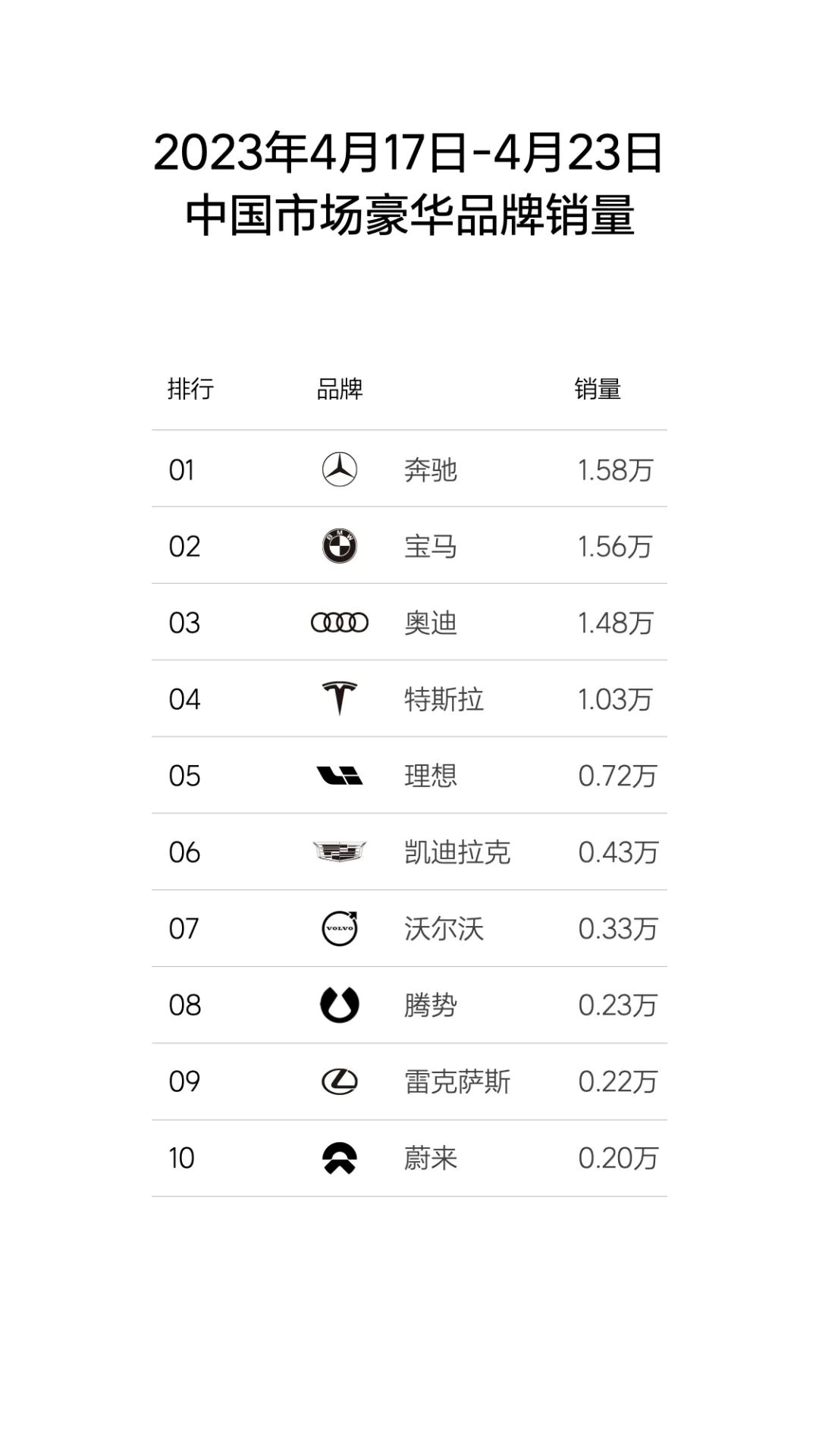 理想汽车也持续稳居中国市场豪华品牌销量前五,是榜单中排名最高的中国品牌,周销量超越了除BBA以外的其他传统豪华品牌。