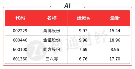 AI大模型以及游戏、传媒、电商等应用方向也在发散。昨日提到的世纪天鸿(300654.SZ)20CM两连板,反复提到的数据要素龙头中国科传(601858.SH)10天7板,续创新高,南方传媒(601900.SH)5天4板,年报增长的盛天网络(300494.SZ)、唐德影视(300426.SZ)均20CM涨停,新华文轩(601811.SH)2连板。AI电商概念:焦点科技(002315.SZ)今日宣布推出AI外贸助手,返利科技(600228.SH)涨停。