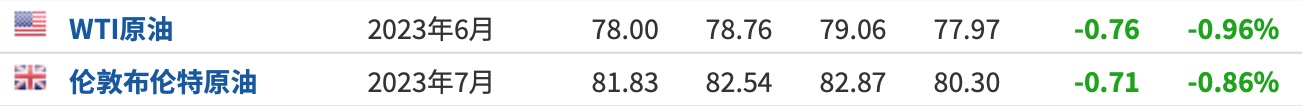 3.截至发稿,WTI原油跌0.96%,报78.00美元/桶。布伦特原油跌0.86%,报81.83美元/桶。