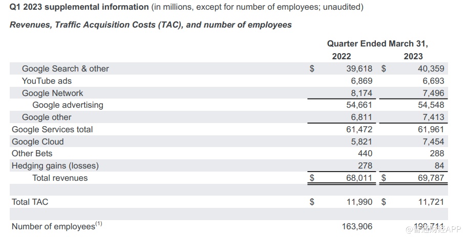 智通财经APP获悉,4月25日周二美股盘后,全球科技巨头谷歌母公司Alphabet(GOOGL.US,GOOG.US)发布了2023年第一季度财报,因多项业务出现增长,该股盘后一度涨超4%。