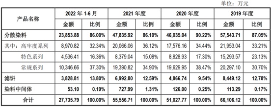 招股书披露,公司专注于中高端分散染料市场,可根据市场及客户的个性化需求,提供包括高牢度系列、特色系列、常规系列等多个系列上百种分散染料产品,其中高牢度系列分散染料是发行人的重点产品,公司产品已在国内外知名运动休闲服饰品牌中得到广泛应用,其中部分终端应用品牌包括:安踏、李宁、阿迪达斯、耐克、优衣库、迪卡侬等。
