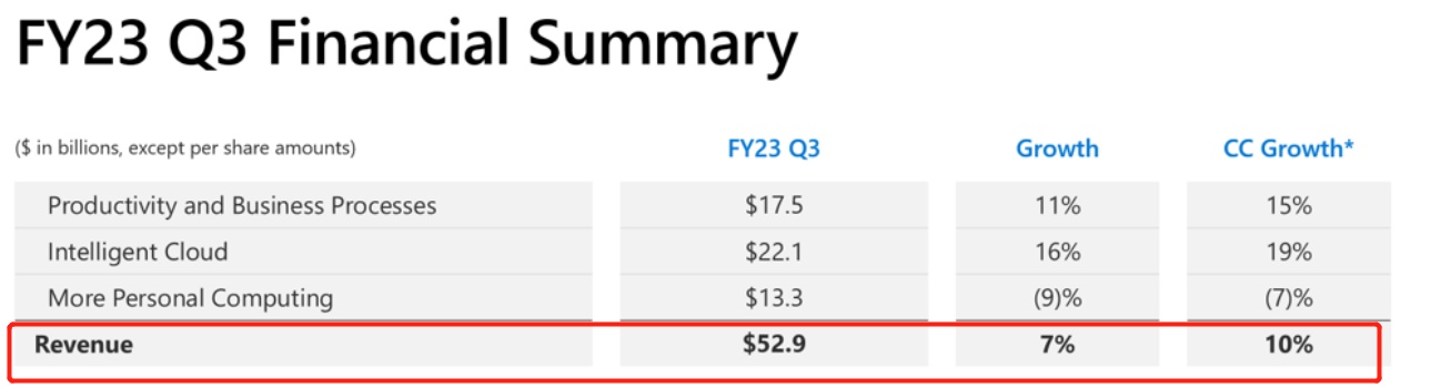 尽管在经历了五年的强劲业绩增长期之后,微软的总营收增速已降至个位数,但微软引以为傲的Azure云和基于云计算的Office 365等产品仍在继续吸引客户,许多公司在经济不稳定的情况下缩减了支出,但对于云计算和Office 365产品等重要服务和软件的硬性需求仍然具备韧性。此外,为了帮助抵御更广泛的经济放缓,微软今年解雇了约1万名员工,其中也包括Azure和安全软件等关键业务部门。