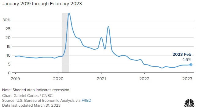 此外,个人储蓄率也大幅下降,从2021年的13.4%降至今年2月的4.6%。