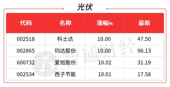 被压制许久的赛道股展开绝地反击,主要是受到了一季度业绩利好的催化。光伏储能方向掀涨停潮,昱能科技(688348.SH)、禾迈股份(688032.SH)均20CM涨停;首板有科士达(002518.SZ)、爱旭股份(600732.SH)、西子节能(002534.SZ)。派能科技(688063.SH)一度20CM涨停,阳光电源(300274.SZ)、宁德时代(300750.SZ)等多股涨势喜人。