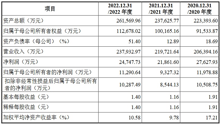 财务方面,于2020年度、2021年度以及2022年度,安邦股份实现营业收入分别约为20.64亿元、21.97亿元、23.79亿元人民币,同期,归属于母公司所有者的净利润分别约为1.20亿元、9327.32万元、1.13亿元人民币。