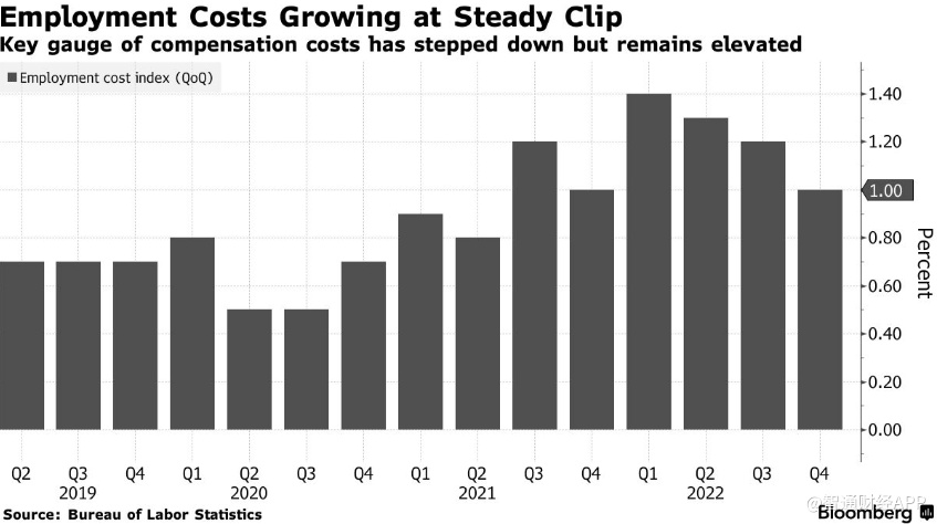 同样将于周五公布的就业成本指数(ECI)可以说是本周最重要的数据。就业成本指数是经济学家(尤其是美联储的经济学家)青睐的衡量薪酬的指标。市场预计美国第一季度劳工就业成本将上升1.1%,较前一季度略有加快。