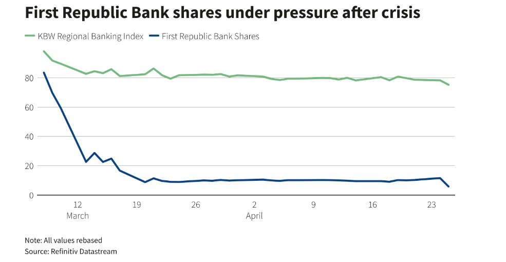 “第一共和国的问题可能是特殊的,他们面前显然有一条非常痛苦的道路。”波士顿B Riley Wealth 的首席市场策略师Art Hogan表示。