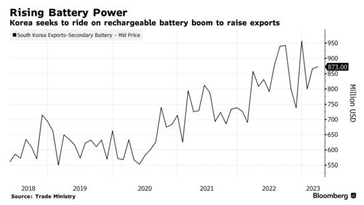 韩国拥有现代汽车公司和起亚汽车这两家全球最大的汽车制造商,以及SK On和三星SDI等其他电池制造商。韩国将电动汽车、可充电电池和航天器视为本国经济的主要增长动力。