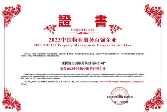 智通财经APP获悉,4月26日,由中国指数研究院主办,以“立而破局 行而致远”为主题的“2023中国物业服务百强企业研究成果发布会”在北京举行。康桥悦生活(02205)以优异的表现,荣膺“2023中国物业服务百强企业”TOP27,这也是悦生活连续第八年获此殊荣。