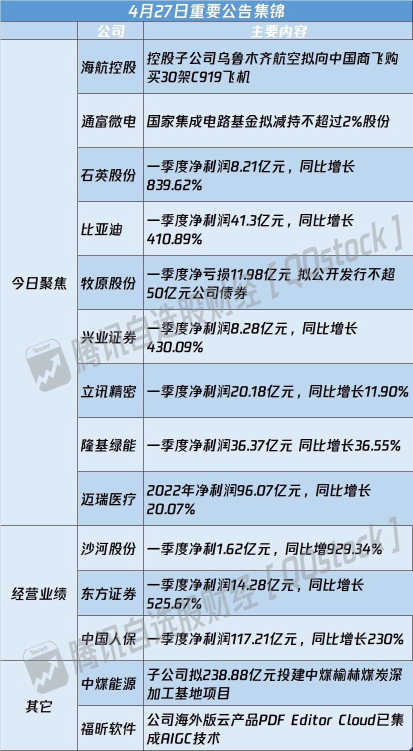 3、石英股份:一季度净利润8.21亿元,同比增长839.62%