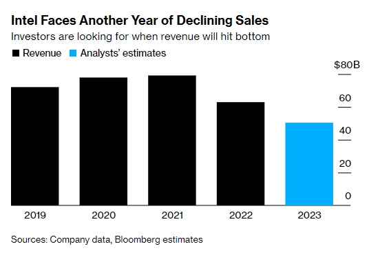 由于库存的大量积压、疲软的需求和市场份额的丧失,英特尔近年来陷入了一个历史性的困境,并迫使其在新的生产技术上投入数十亿美元。投资者一直对这家芯片制造商能否赶上竞争对手持怀疑态度,该股也因此在去年暴跌近50%。尽管股价在2023年开始回升,但首席执行官Pat Gelsinger仍需提供具体证据,证明英特尔的财务状况正在改善。