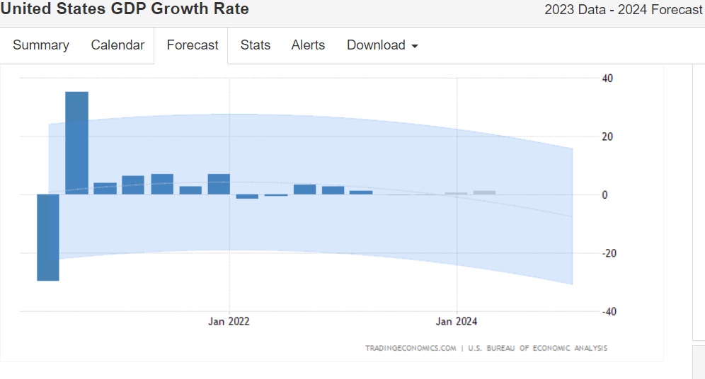 一项最新调查显示,经济学家普遍预测,在本季度美国GDP将以0.2%的极缓慢速度增长。根据Trading Economics全球宏观模型结合分析师预期,该平台的预测数据显示本季度末美国GDP增长率预计为-0.30%,在下半年陷入轻微衰退,预计2024年出现转机。