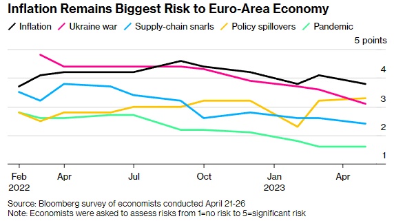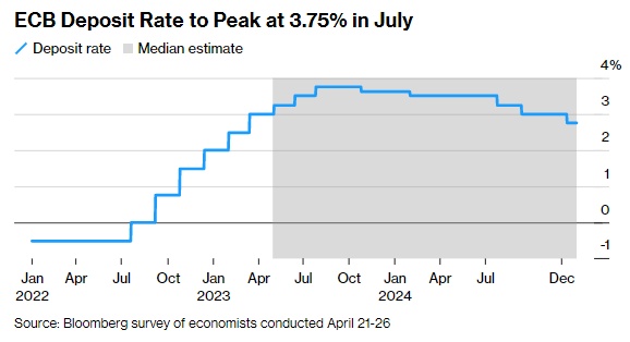Bloomberg欧元区高级经济学家David Powell表示。“我们认为,欧洲央行将很快停止加息。我们预计6月份将最终加息25个基点,使存款利率达到3.50%,但核心通胀的粘性使7月份再次加息的风险增加。”