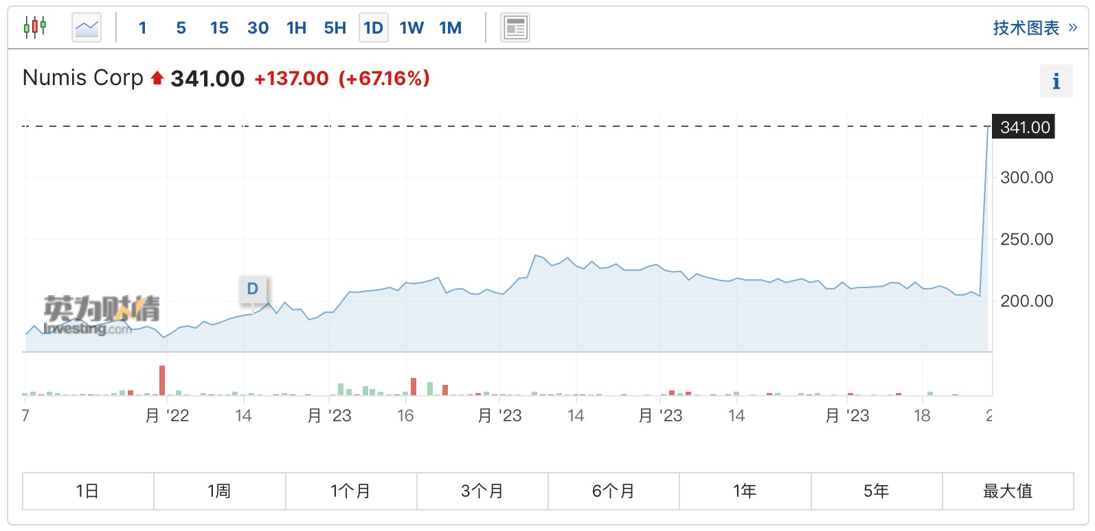 智通财经APP获悉,德意志银行(DB.US)周五表示,将斥资约4.1亿英镑(约合5.11亿美元)收购总部位于英国伦敦的机构股票经纪及企业顾问公司Numis Corp,以加深其与英国企业客户部门的联系。据悉,该收购要约每股350便士的全现金报价较Numis Corp周四收盘价溢价72%。截至发稿,Numis Corp在伦敦证券交易所上市的股票暴涨逾67%,报341便士。