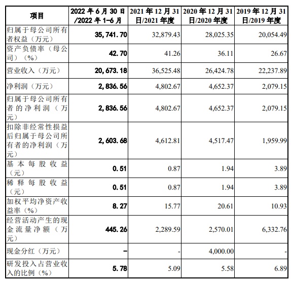 财务方面,于2019年度、2020年度、2021年度以及2022年1-6月,聚威新材实现营业收入分别约为2.22亿元、2.64亿元、3.65亿元以及2.07亿元;归属于母公司所有者的净利润分别为2079.15万元、4652.37万元、4802.67万元以及2836.56万元。