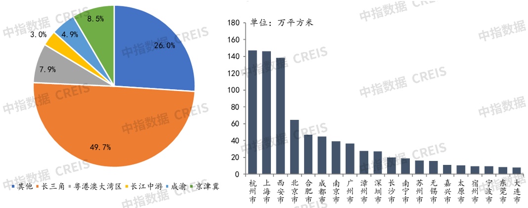 表:2023年1-4月50家代表房企重点拿地面积城市、区域分布情况