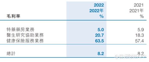 毛利率方面,特药药房毛利率5.0%,较去年下降0.9个百分点,其他两项业务毛利率有提高,使公司总毛利率维持不变。报告期内,SMO业务毛利率20.7%,较去年提高2.4个百分点,健康保险业务毛利率63.5%,较去年提高6.1个百分点。