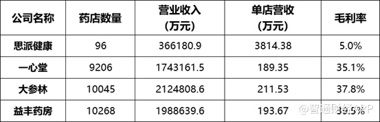 尽管思派健康的三大业务形成了闭环,但是特药药房并没有很深的市场准入壁垒,益丰药房、大参林、一心堂等均具有DTP专业药房,并且这些公司均已形成地区竞争优势。不仅如此,这些大药房不管是药店数量还是毛利率均碾压思派健康,思派健康要从中脱颖而出并非易事。