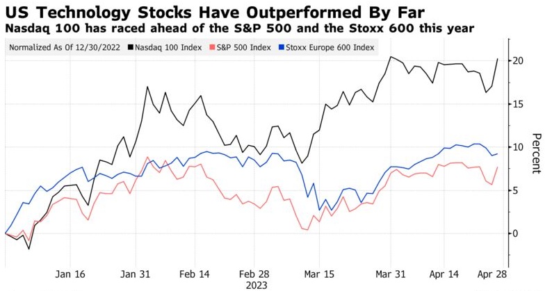 美国和欧洲股市在业绩公布前大幅上涨,推高了估值,提高了进一步上涨的门槛,但对经济衰退和利率上升的担忧抑制了市场情绪。投资者现在正准备从美国工业、汽车制造商和零售商那里获得有关消费者健康状况的进一步线索,以下是一季度财报季迄今为止的四个关键信息: