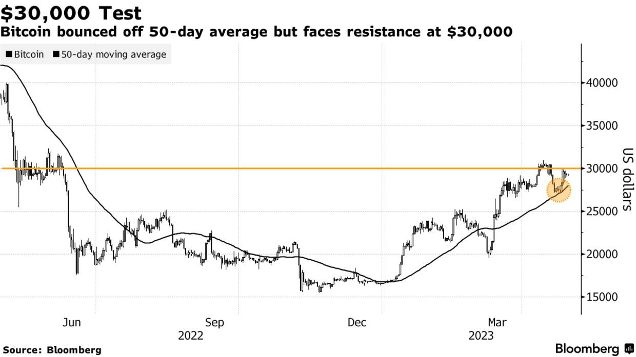 今年以来,比特币从去年的加密货币暴跌中大幅反弹,涨幅达72%。市场押注美联储最终将转向宽松的货币政策、以及美国银行业危机侵蚀了人们对法定货币的信心推动了比特币的上涨。不过,比特币如今在3万美元附近停滞不前,交易员则在等待进一步的催化剂。