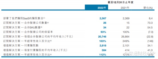 2022年,其院内解决方案收入21.84亿元,同比增长71.6%,占总收入超六成,主要由于SaaS进一步渗透到医院、付费医院数量增加以及与制药公司加强合作以提供数字营销服务的订阅解决方案的增加;