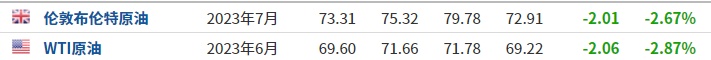 3.截至发稿,WTI原油跌2.87%,报69.60美元/桶。布伦特原油跌2.67%,报73.31美元/桶。