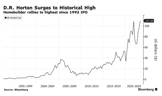 智通财经APP获悉,周三,美国最大房企霍顿房屋(DHI.US)股价一度触及历史新高,因投资者押注这家住宅建筑巨头将受益于美联储最终暂停加息周期。