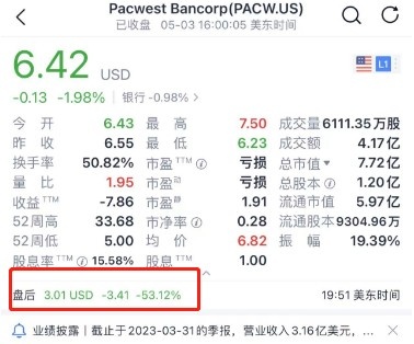 6、美国又一家银行危险了!西太平洋合众银行盘后股价暴跌超53%
