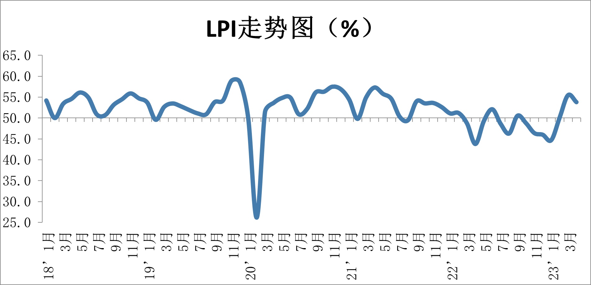 2023年4月份中国物流业景气指数为53.8%