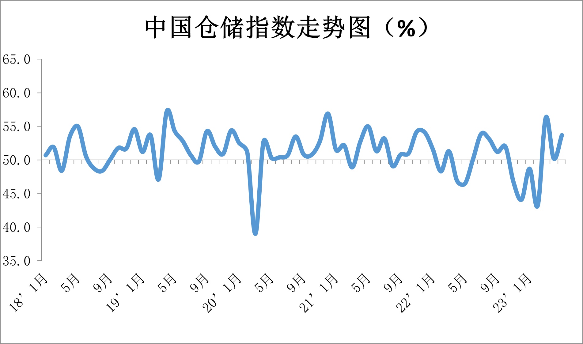 中国物流与采购联合会发布的2023年4月份中国物流业景气指数为53.8%,较上月回落1.7个百分点;中国仓储业指数为53.7%,较上月上升3.5个百分点。