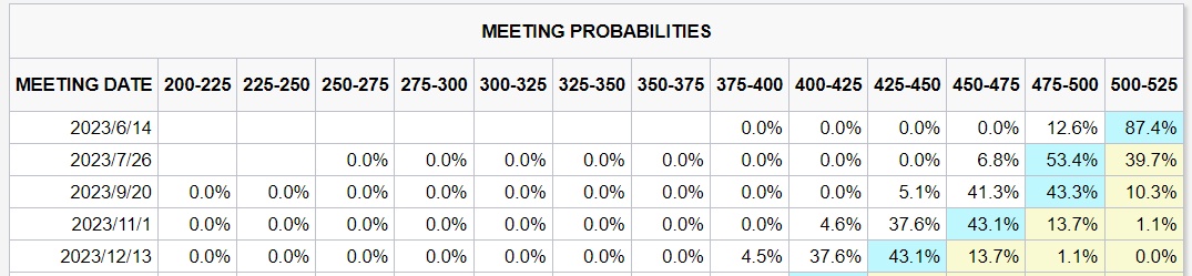 美联储官员3月份发布的预测中值显示,政策制定者预计到年底利率将升至5.1%,这意味着官员们可能会在5月份加息后正式宣告本轮加息周期结束。包括失业率在内的经济数据预测将在美联储6月份的会议上更新。