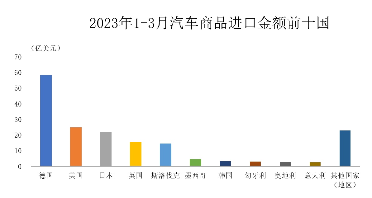 智通财经APP获悉,5月4日,据中国汽车工业协会整理的海关总署数据显示,2023年一季度,汽车商品进口金额排名前十位国家依次是德国、美国、日本、英国、斯洛伐克、墨西哥、韩国、匈牙利、奥地利和意大利。与上年同期相比,英国和斯洛伐克进口金额呈微增,其他国家均呈不同程度的下降,其中日本、美国和韩国进口金额呈显著下降。2023年一季度,上述十国汽车商品累计进口金额154.5亿美元,占全部汽车商品进口总额的86.9%。