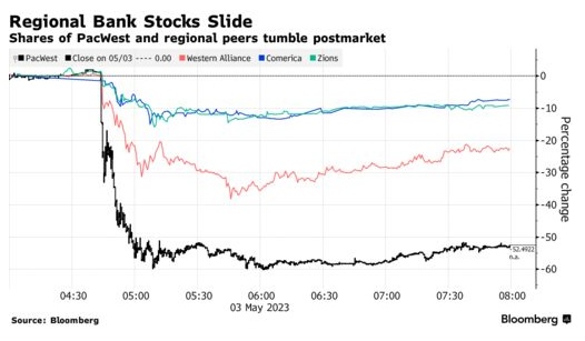 Bancorp,PACW.US)当地时间周三发表声明表示,自3月份以来,该银行存款有所增加,并证实正在与几位潜在投资者进行谈判。由于盘后一度暴跌近60%,PacWest成为了美国地区性银行健康问题的新焦点。